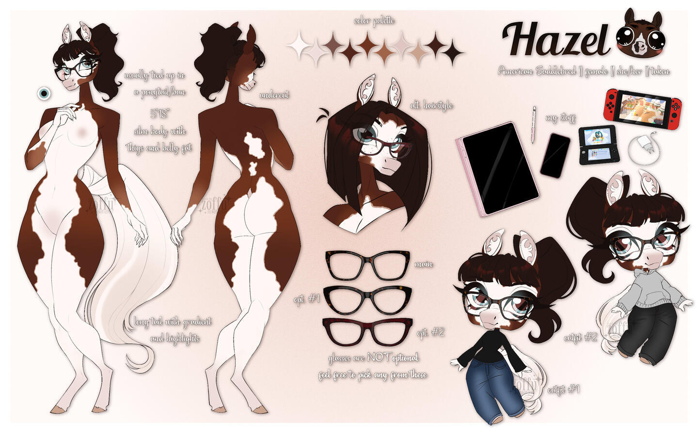 I’m Zoffu, but I also go by Hazelka. I’m a freelance artist from Poland. For now I draw as a hobby, but one of my dreams is to do art full-time. I mostly draw furry/anthro characters like cats, dogs, or hooved animals – with horses being my favorite.